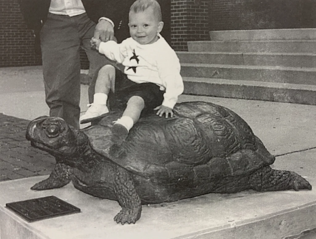 The turtle originally had a far more prominent position in Parents Plaza, out in the open near the risers by the bridge connecting the Shankweiler and Trumbower buildings. Giftedto the college by Muhlenberg’s ninth president, Jonathan C. Messerli, in 1991, the turtle was relocated during the construction of New Science.