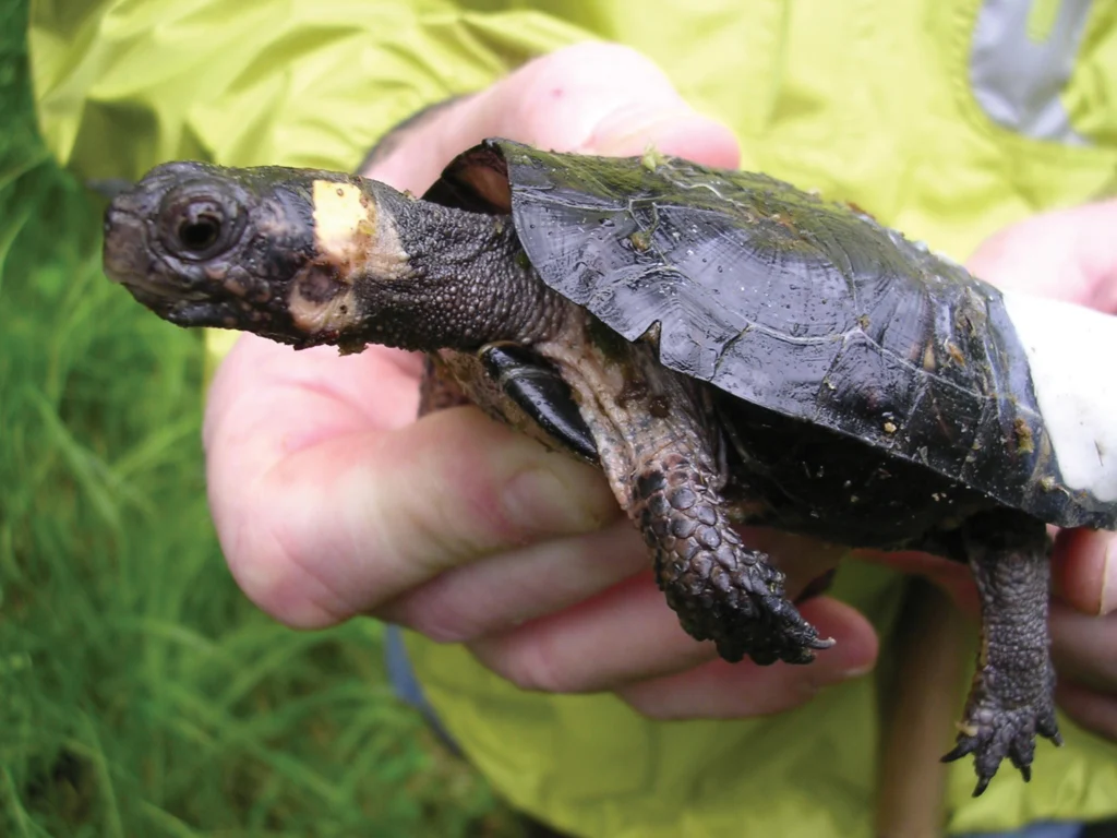 Image of a real bog turtle. Photo by Peter Pattavina/USFWS
